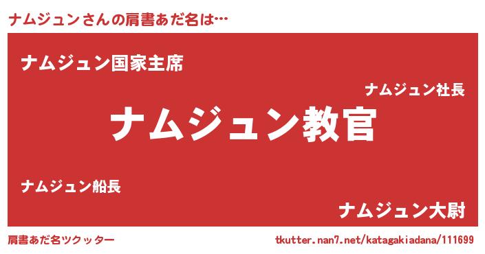 | 意味不明あだ名 | 『住所不定無職ナムジュン(5歳)』 |