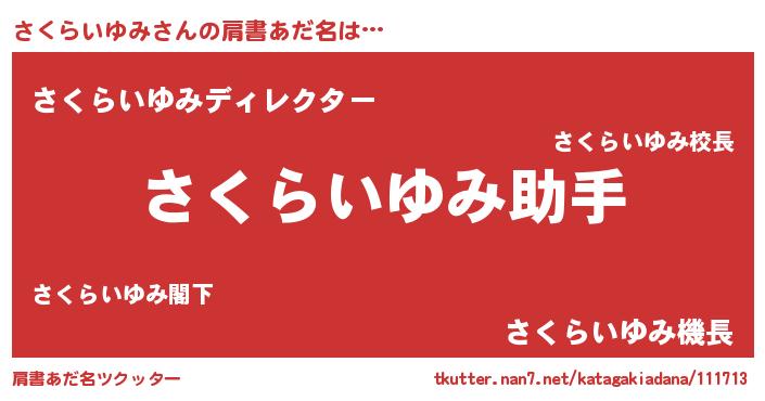 | ヘコむあだ名 | 『さくらいゆみ(笑)』『つくし』 |