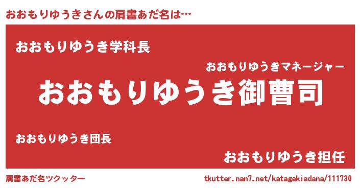 | 男性向けラノベタイトル風あだ名 | 『おおもりゆうきの憂鬱』 |
