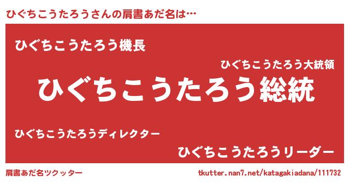 | 欧米人風あだ名 | 『ケンブリッジひぐちこうたろう』 |