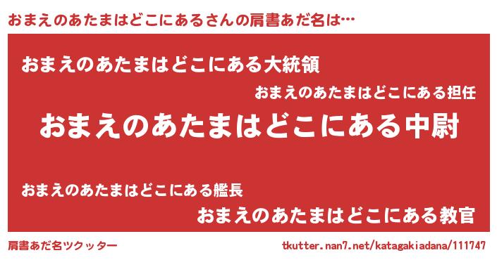 | ポケモン風あだ名 | 『オマキング』『オマエダネ』 |