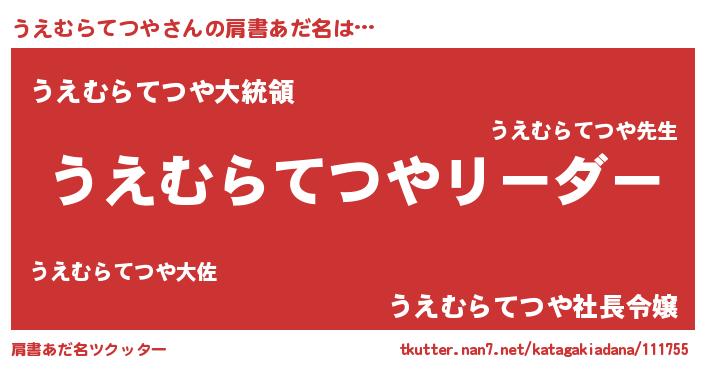 | 女子向けラノベタイトル風あだ名 | 『うえむらてつやは平凡を望む』 |