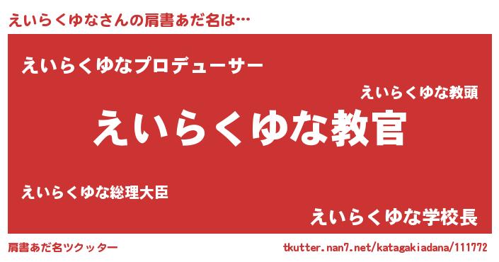 | 男性向けラノベタイトル風あだ名 | 『魔弾の王とえいらくゆな』 |