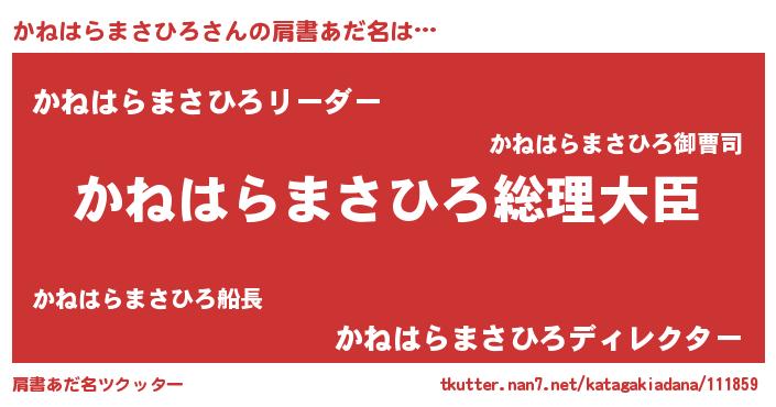 | 女子向けラノベタイトル風あだ名 | 『かねはらまさひろの婚約者』 |