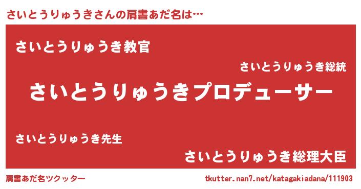 | 男性向けラノベタイトル風あだ名 | 『はたらくさいとうりゅうきさま!』 |