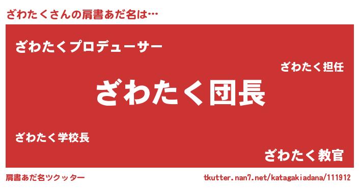 | ポケモン風あだ名 | 『ヒザワタク』『ザワゴンZ』 |