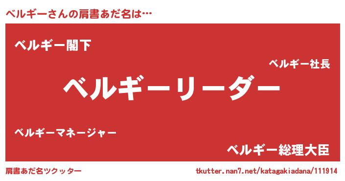 | ヒーロー風カッコイイあだ名 | 『暗黒騎士ベル』『超時空戦士ベルギー』 |