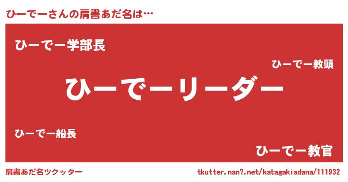 | ヘコむあだ名 | 『ひーぷりん』『ひーでー(遠い目)』 |