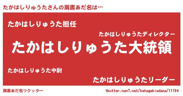 | ファンタジー風あだ名 | 『エターナルタカハシリュウター』 |