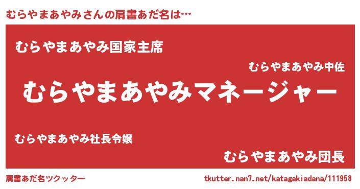 | 男性向けラノベタイトル風あだ名 | 『むらやまあやみに滅ぼされるだけの簡単なお仕事です』 |