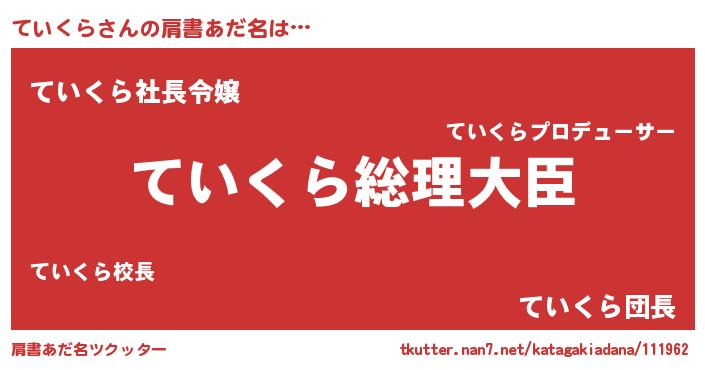 | ヒーロー風カッコイイあだ名 | 『ウルトラていくらマン』『幻影騎士テイ』 |