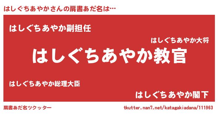 ヒーロー風カッコイイあだ名 | 『仮面ハシダー』『ネオハシグチアヤカ』 |