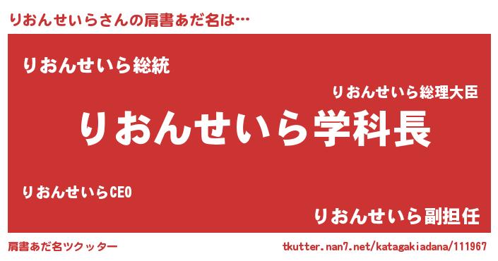 | ヘコむあだ名 | 『りおんせいら(震え声)』『つくし』 |