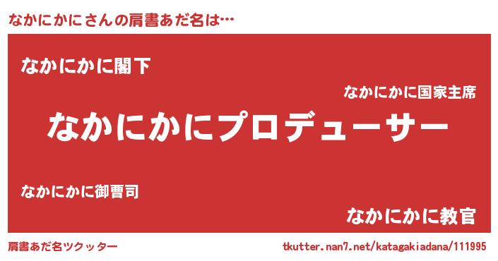 | 男性向けラノベタイトル風あだ名 | 『なかにかにに滅ぼされるだけの簡単なお仕事です』 |