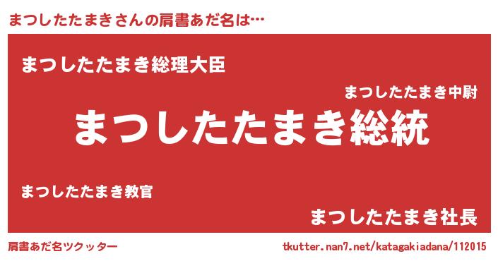 | 意味不明あだ名 | 『自称まつしたたまき』 |