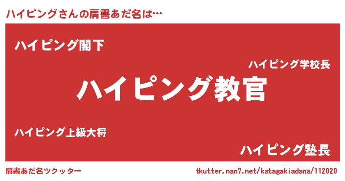 | 意味不明あだ名 | 『住所不定無職ハイピング(9歳)』 |
