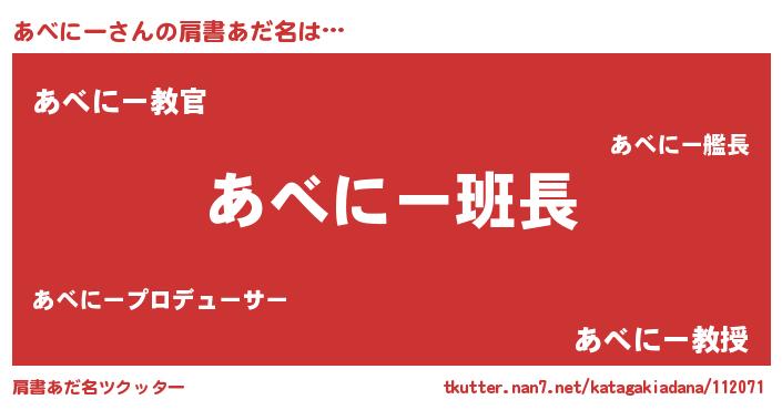 | 意味不明あだ名 | 『とにかく怪しいあべにー』 |