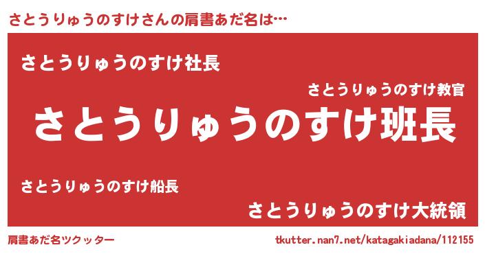 | 意味不明あだ名 | 『とにかく怪しいさとうりゅうのすけ』 |