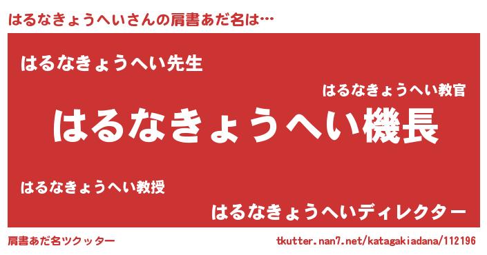| ヘコむあだ名 | 『はるなきょうへい(遠い目)』『はるにー』 |