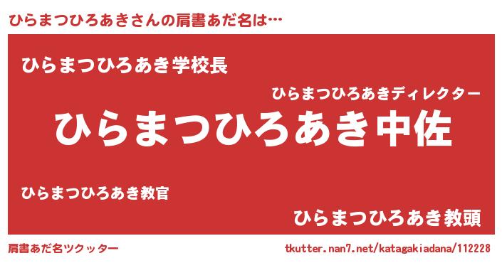 | 男性向けラノベタイトル風あだ名 | 『ヒラマツヒロアキスレイヤー』 |