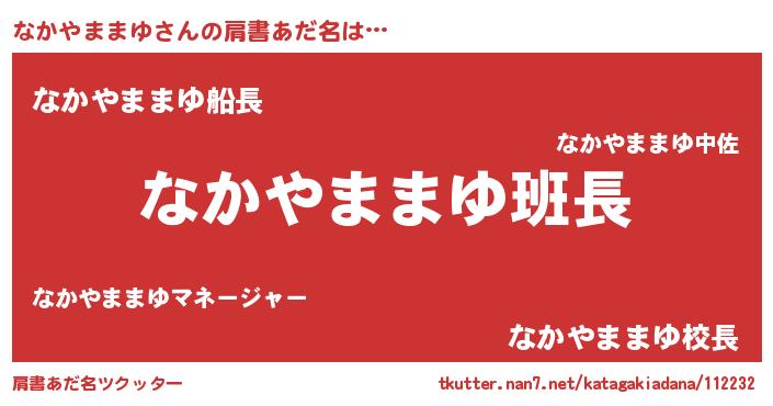 | 意味不明あだ名 | 『とにかく怪しいなかやままゆ』 |