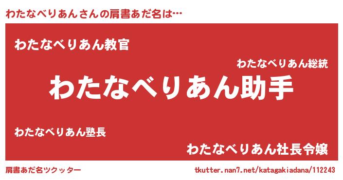 | 胡散臭い通販商品みたいなあだ名 | 『100人中100人が認めたイリジウム磁石…その名も「わたなべりあん」』 |