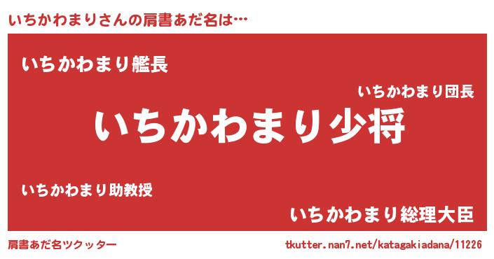 | 男性向けラノベタイトル風あだ名 | 『転生したらいちかわまりだった件』 |