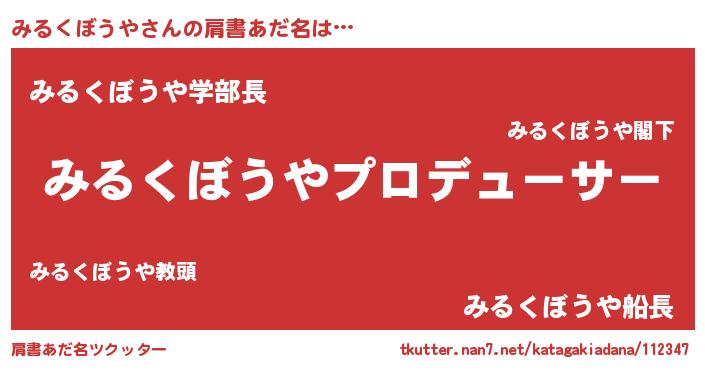 | ヘコむあだ名 | 『みるくぼうや(震え声)』『みるっふぃ~』 |