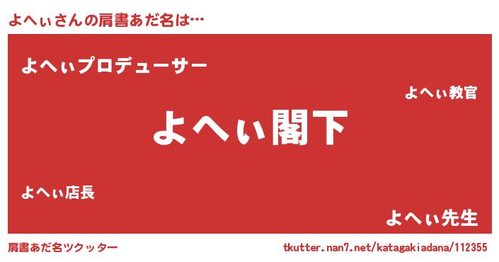 | 男性向けラノベタイトル風あだ名 | 『Re:よへぃから始める異世界生活』 |