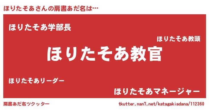 | ヘコむあだ名 | 『ほりたそあ(笑)』『ほりぷりん』 |