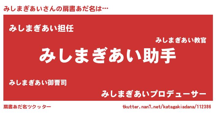 | 男性向けラノベタイトル風あだ名 | 『ノーゲーム・ノーミシマギアイ』 |