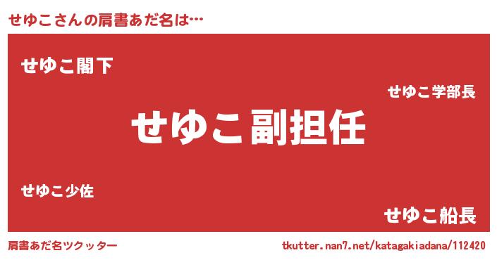 | 意味不明あだ名 | 『永久保存せゆこ』『自称せゆこ』 |