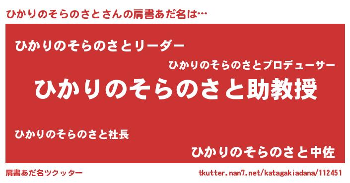 | 男性向けラノベタイトル風あだ名 | 『ノーゲーム・ノーヒカリノソラノサト』 |
