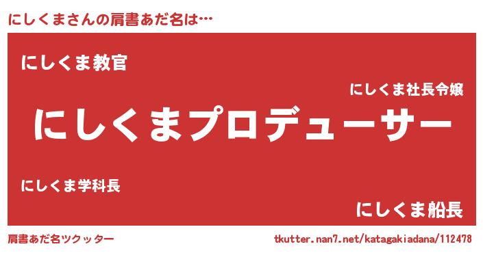 | 男性向けラノベタイトル風あだ名 | 『はたらくにしくまさま!』 |