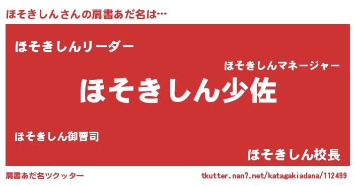 | 男性向けラノベタイトル風あだ名 | 『転生したらほそきしんだった件』 |