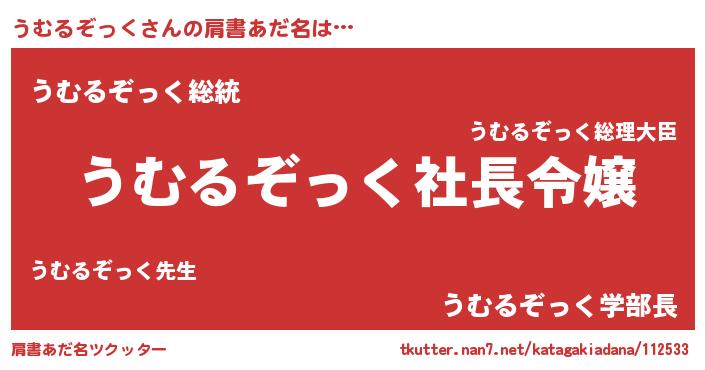 | 女子向けラノベタイトル風あだ名 | 『(仮)うむるぞっくのやんごとなき事情』 |