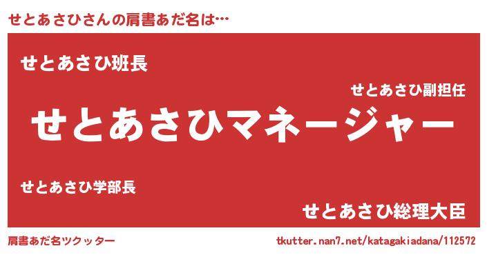 | 意味不明あだ名 | 『とにかく怪しいせとあさひ』 |