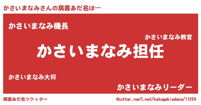 | ヘコむあだ名 | 『かさいまなみ(震え声)』『かさっちょ』 |