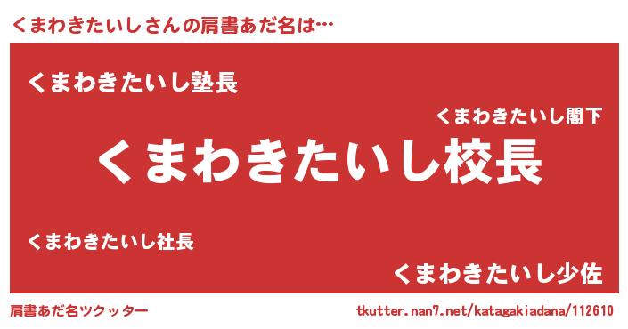 | ヘコむあだ名 | 『くまわきたいし(笑)』『くまっぺ』 |