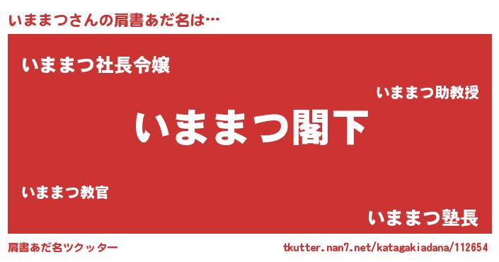 | 意味不明あだ名 | 『自称いままつ』『ペロリンいままつ』 |