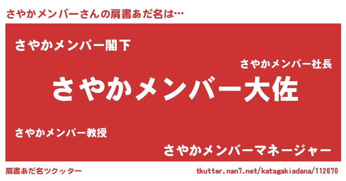 | ヘコむあだ名 | 『さやふぇ~』『さや太郎』 |