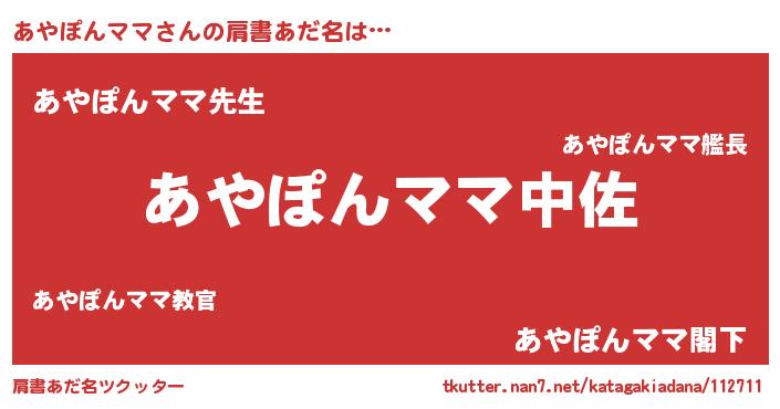 | 男性向けラノベタイトル風あだ名 | 『アヤポンママスレイヤー』 |