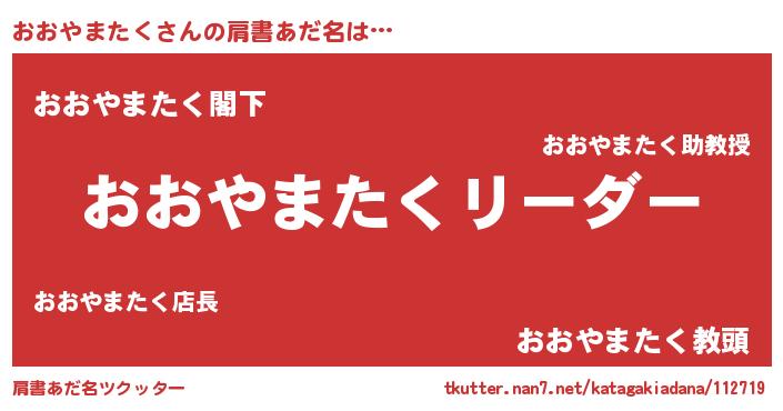 | 女子向けラノベタイトル風あだ名 | 『おおやまたくは平凡を望む』 |