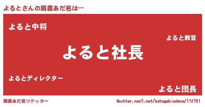| 欧米人風あだ名 | 『マイケルよると』『トリンドルよると』 |
