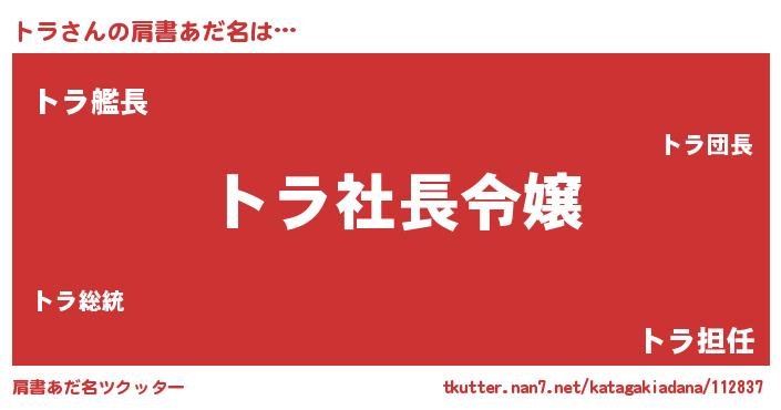 | 女子向けラノベタイトル風あだ名 | 『トラ姫と円卓の騎士』『トラ様がみてる』 |