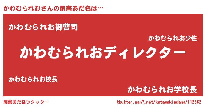 | 男性向けラノベタイトル風あだ名 | 『かわむられおに滅ぼされるだけの簡単なお仕事です』 |