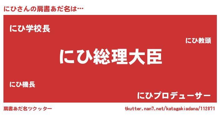 | ヘコむあだ名 | 『なまこ酢』『にひ(笑)』『にひもー』 |