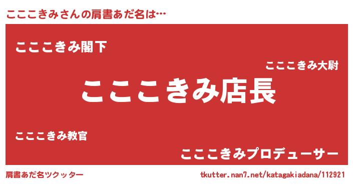 | ヒーロー風カッコイイあだ名 | 『スーパーコココキミ』『仮面ココダー』 |