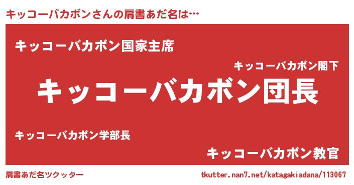 | 男性向けラノベタイトル風あだ名 | 『キッコーバカボンの嫁は女の子じゃないと思った?』 |