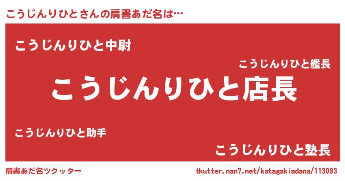 | 男性向けラノベタイトル風あだ名 | 『コウジンリヒトアートオンライン』 |